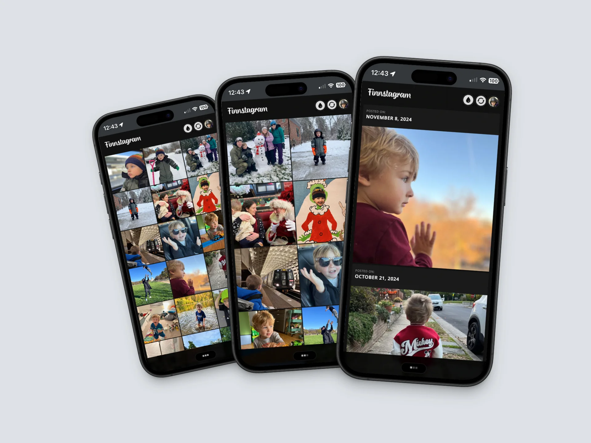 A Nuxt 3 web app that displays photos of our son, powered by a headless WordPress backend. Content is managed through the WordPress REST API, and new photos are uploaded using an iOS Shortcut that emails images directly to the system, making updates fast and seamless.